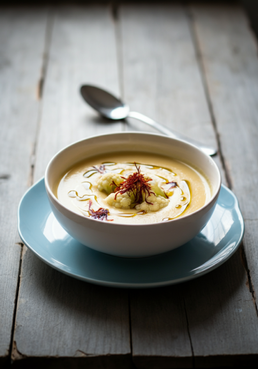 Creamy Saffron Cauliflower Soup with Sumac Oil