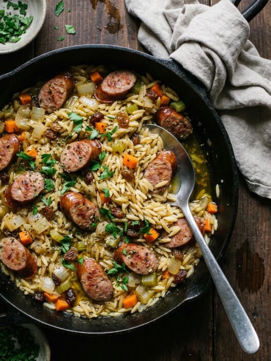 I really like that this is a two pan dish if you serve it with pasta. You make the chicken and sauce in one large skillet and then of course, your pot for the noodles. Sometimes we forego the noodles and enjoy it over a bed a leftover white rice, which is a great way to make dinners stretch.
