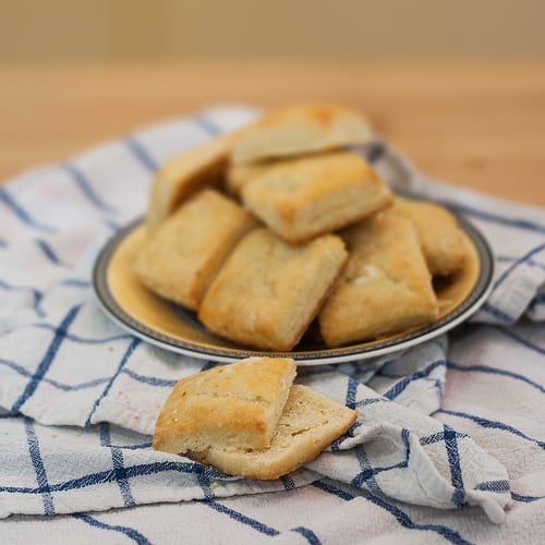 These biscuits were so much fun to make: from rubbing the butter into the flour, to patting down the fluffy, pillow soft dough, to cutting out perfect little squares of dough and painting them with an egg-milk wash.