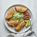 - Mix salsa ingredients in a medium bowl and season with salt. Set aside.