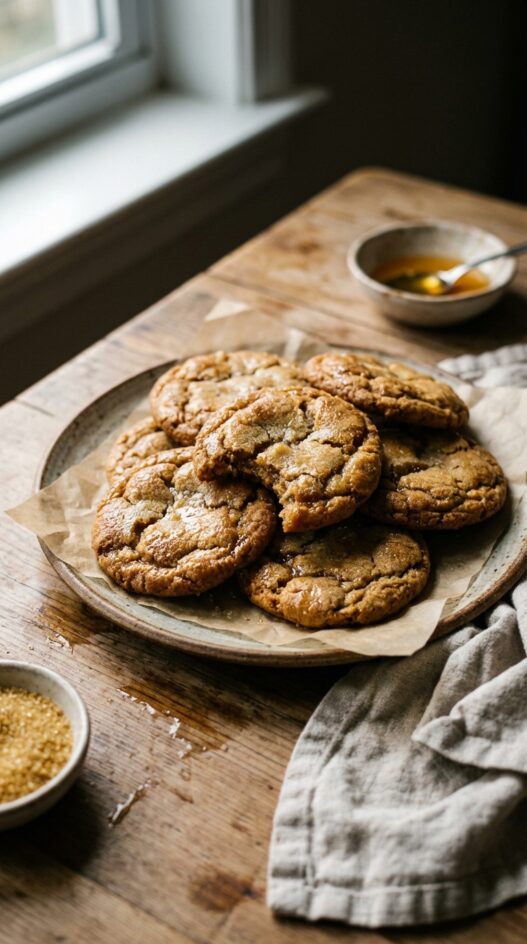 Honey cookies are something I come back to every few months, usually when the pantry is mostly bare and I want to bake something fast. These have a thin, crisp shell and a center that stays chewy even a day later. That contrast is what makes them. Seven ingredients, most of which you already have, and the dough takes about five minutes to mix before it goes into the fridge. Chill it at least an hour. Longer is better. The texture when you skip the chilling step is just not the same.