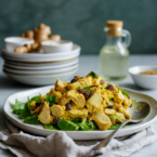 A vibrant curried chicken salad brightened with golden raisins, lime, and honey. Perfect for a light lunch or appetizer.