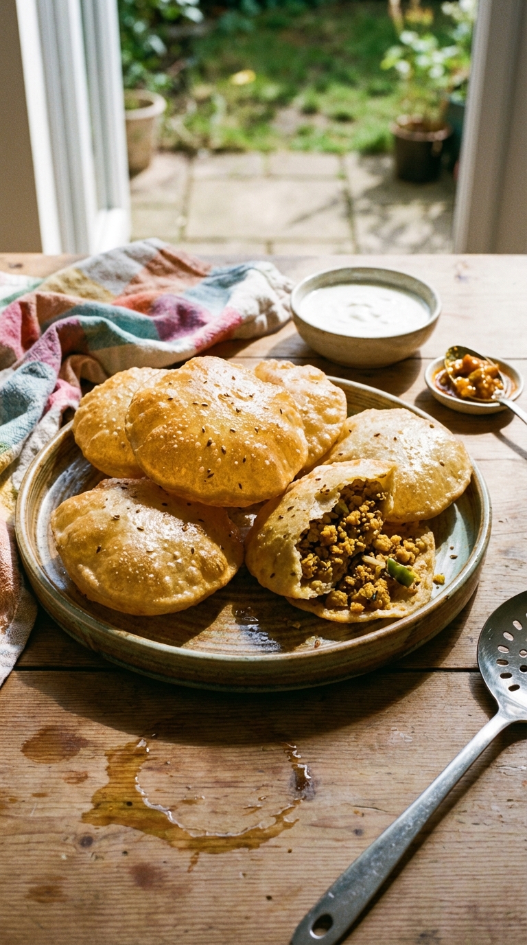 My neighbour in Delhi made daal poori every Sunday morning. She would sit cross-legged on the kitchen floor with a brass bowl of spiced lentil filling in one hand and small rounds of dough in the other, tucking a teaspoon of filling into each ball and rolling it flat before it hit the oil. Her pooris puffed every single time.