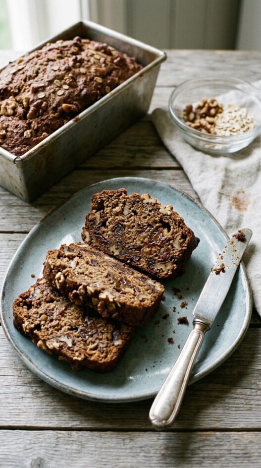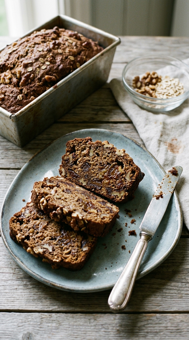 Walnuts can be replaced with pecans or roughly chopped hazelnuts at the same 1 cup quantity. Leaving them out entirely is fine — the loaf will be slightly less textured but still moist from the dates.