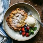 - Plate with a scoop of ice cream alongside, and garnish with fresh berries and a sprig of mint. Serve immediately.