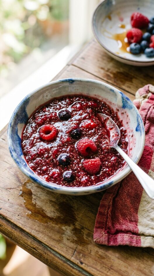 You can use any combination of berries you like, such as strawberries, blueberries, or raspberries, to create your Double Berry Chia Seed Jam.
