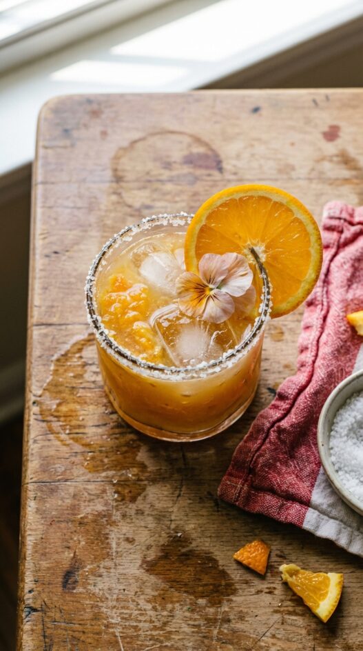 - Garnish with an orange wheel and flower.