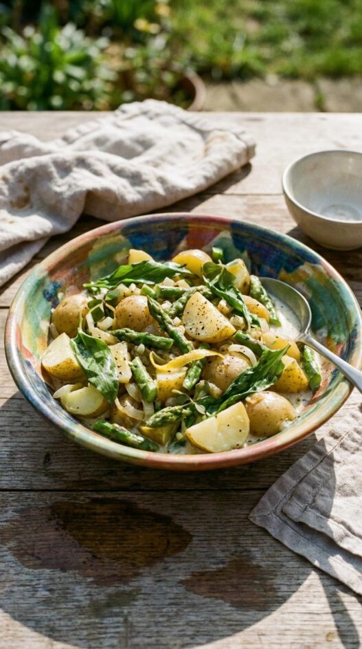 You do not need many ingredients here. Butter, cream, lemon peel, garlic, and good asparagus will carry everything. The potatoes soak up that lemon-scented cream while the asparagus stays bright and snappy. It works as a side on the Easter table or as a full meal with bread and something smoked.