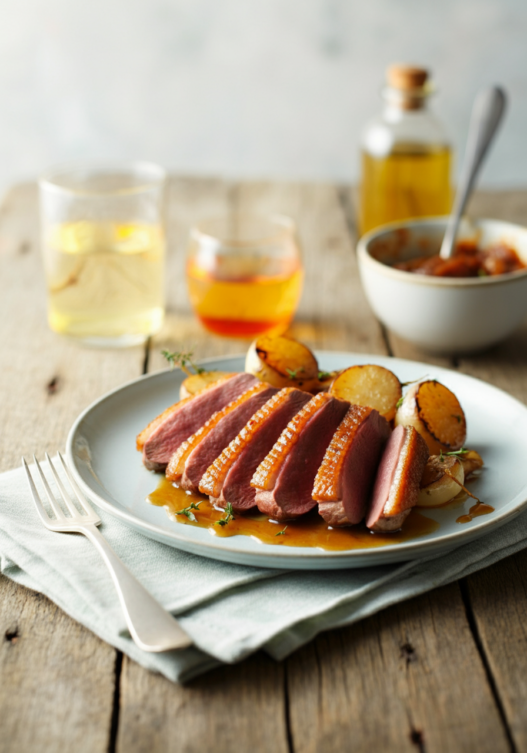 - For perfectly crispy skin, score the duck breasts deeply but avoid cutting into the meat.