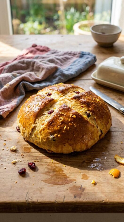 For a more decorative look, you can braid the dough instead of shaping it into a loaf. Store the cake in an airtight container at room temperature for up to 3 days. You can substitute dried cranberries with raisins if preferred. Ensure the dough rises in a warm, draft-free area for the best results.