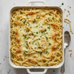 - Combine sauce with cooked linguine; toss to coat. Transfer pasta to prepared baking dish.