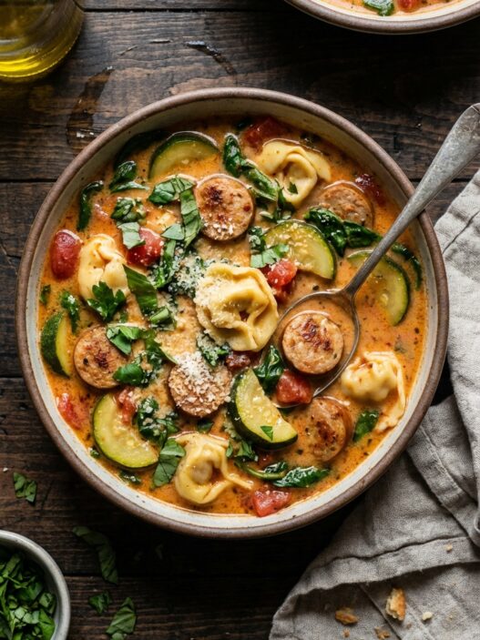 You can brown ground beef, sausage, or chicken in the pan before adding the onion, then follow the recipe as directed to incorporate the creamy tomato sauce.