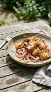 Crispy chicken thighs tossed in a flavorful black pepper sauce, served over fluffy rice. A quick, satisfying weeknight meal.