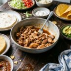 This is the easiest endeavor. All you have to do to is throw the ingredients into a plastic container and freeze it until you are ready to use it. Dump the whole frozen chunk of taco chicken into the Instant Pot, sauté it for a few minutes to get it started, add a little water, cook at high pressure for 20 minutes, quick release, and shred. Voila! Instant Pot chicken tacos straight from the freezer.