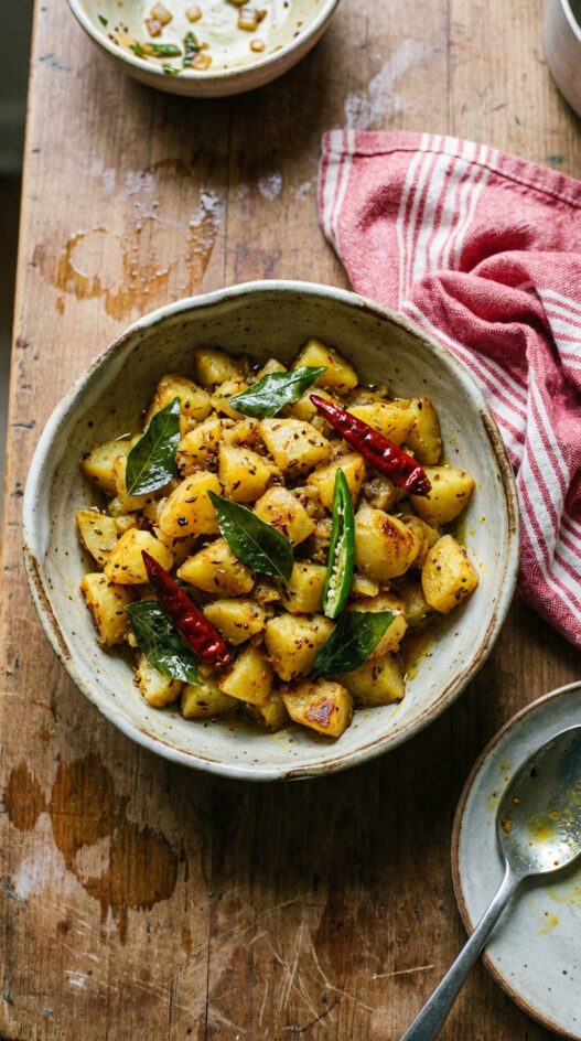 ‘Aloo’ means potato and ‘sabzi’ means vegetable dish in Hindi. This is a simple, everyday potato stir-fry that’s a staple in many Indian households, often served with roti or rice.