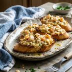 - Assemble the Crostini: Top each baguette slice with 1-2 tablespoons of seafood spread.