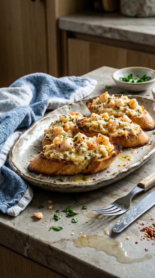 Made these shrimp and crab crostinis for my buddy’s football game gathering. They vanished within minutes! Especially loved the crispy baguette—total hit!