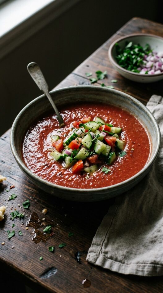 - If you prefer a less spicy gazpacho, reduce the amount of crushed red pepper flakes or omit it altogether.