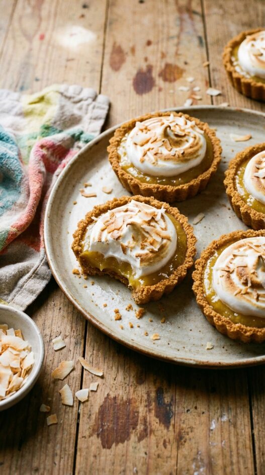 Tangy pineapple curd meets a toasted coconut meringue in these delightful tartlets. A perfect tropical treat!