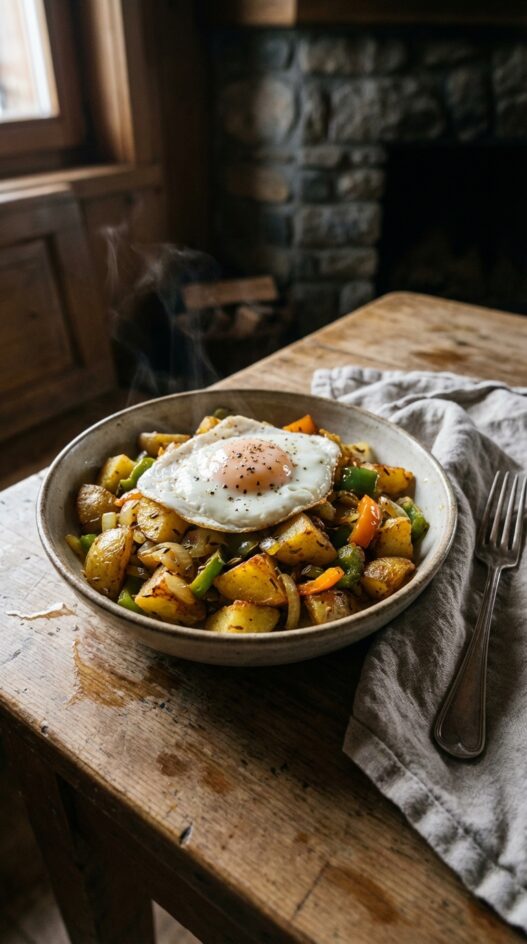 - Arrange the fried egg on top of the hash.