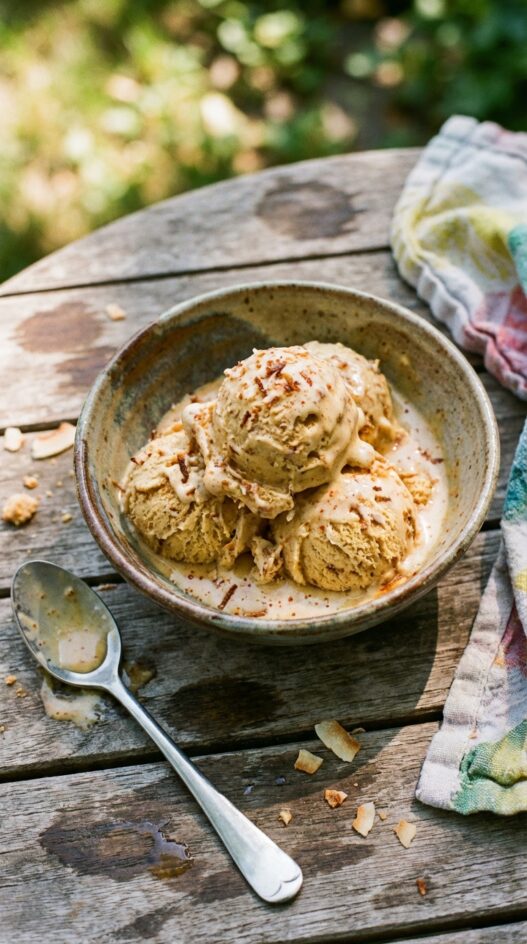 Thai-inspired ice cream with a kick! Creamy peanut butter, toasted coconut, and a hint of chili create a dreamy dessert.