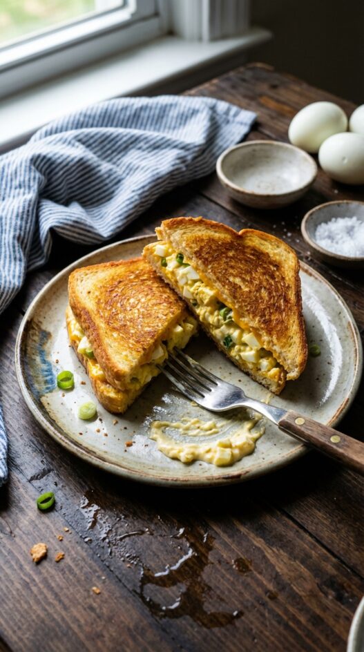 A twist on a classic! Creamy egg salad meets melty cheese in this satisfying grilled cheese.