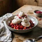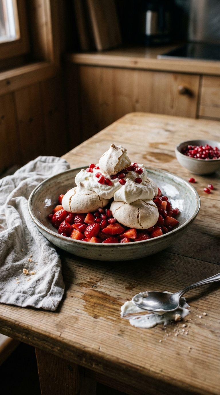 Layers of meringue, whipped cream, and berries create a delightful crunch and refreshing sweetness. Perfect for a light dessert or afternoon treat.