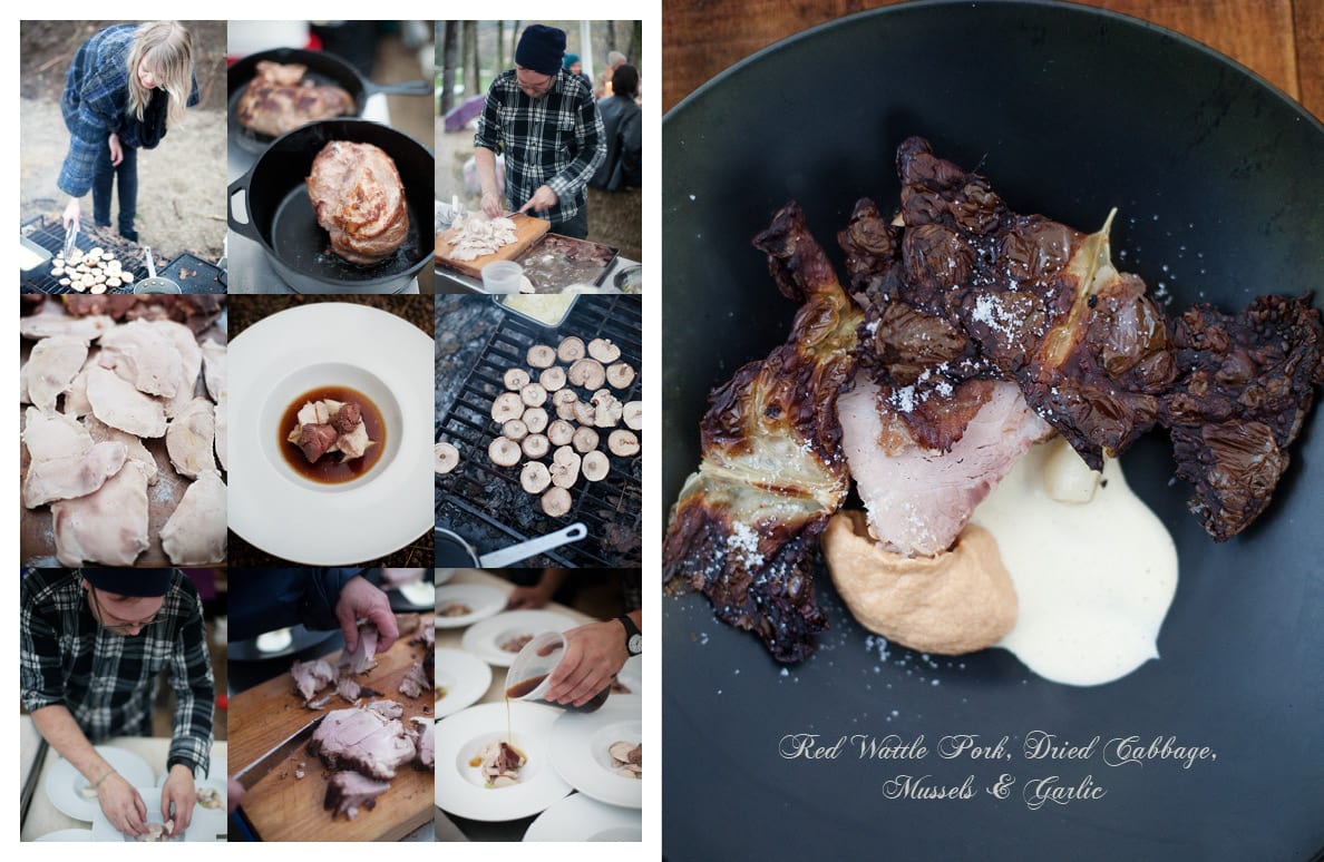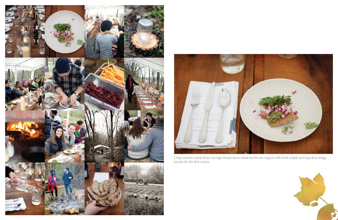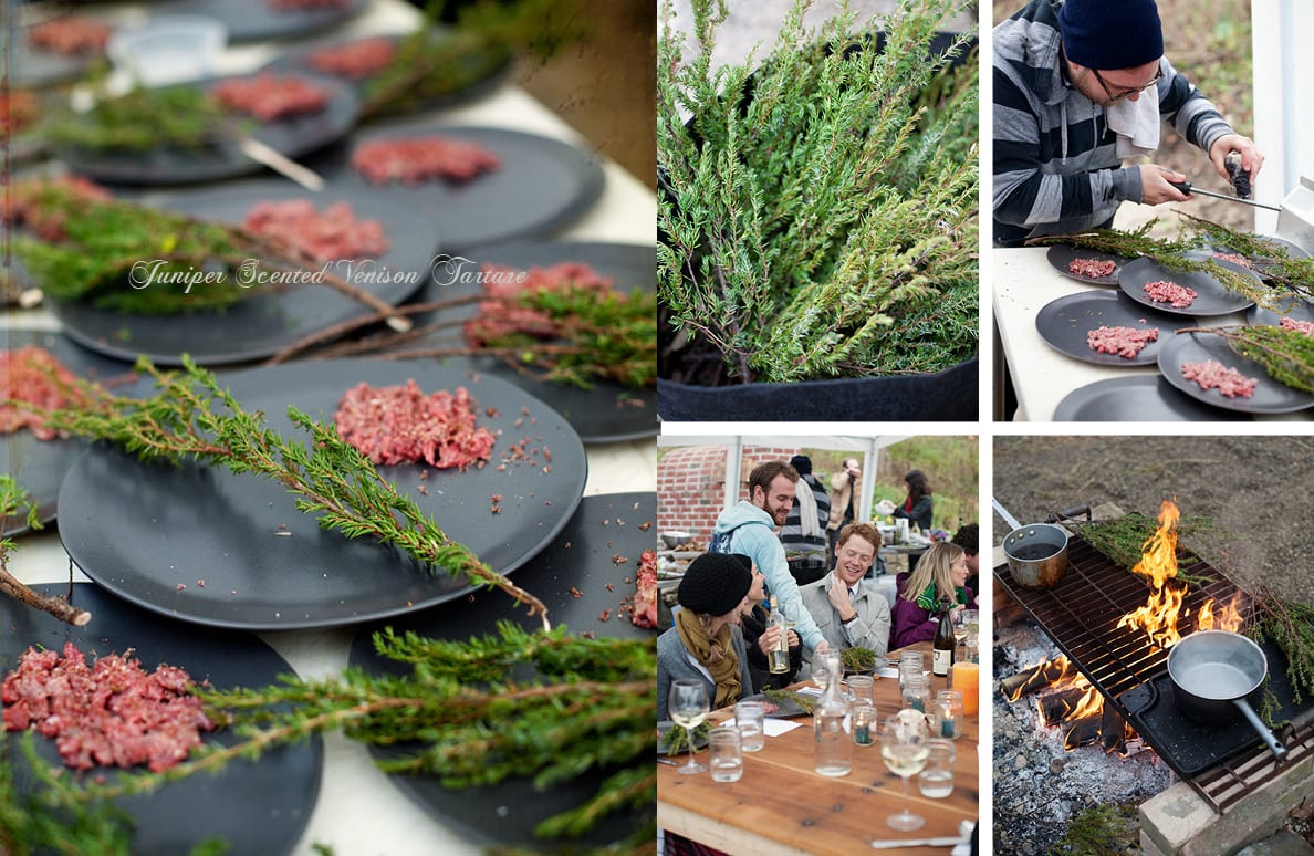 With the exception of the Battle Point Oysters from Virginia, almost every ingredient came directly from Carriage House or Napoleon Ridge, including foraged non-food items such as moss for the décor, juniper branches to scent the venison, and wet leaves to steam the oysters.