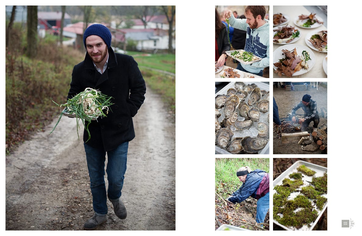 The choice of the farm with its rural setting was a natural fit for Santos and his crew. “We find a lot of inspiration from nature, and it seemed like a logical connection to make for us,” he says. “Also, I wanted to showcase the awesome produce and meats from Carriage House and Napoleon Ridge (the northern Kentucky farm supplied broccoli, cauliflower, pecans, sorrel, as well as ‘man power’ for the dinner, in the form of Houston) and let the surroundings and the fire really bring out their great flavors.”