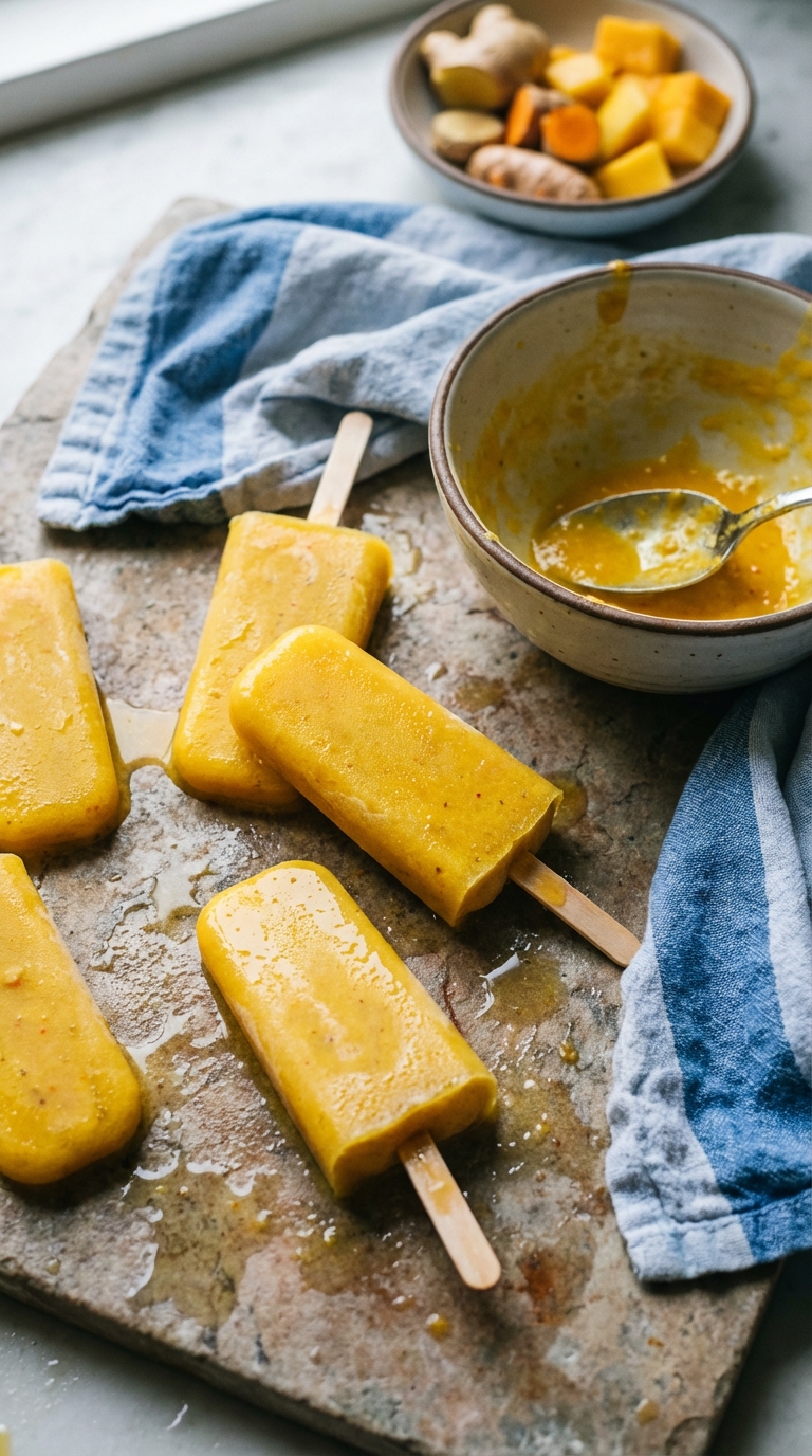 Bright, healthy popsicles packed with mango, ginger, and turmeric. Perfect for a chilly day or when you need a little extra zing.