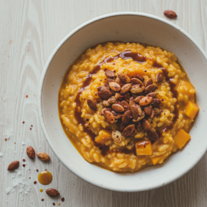 Lasagna al ragu di prosciutto – Lasagna with meat sauce and ham. Served in a mini cast iron pan, a layer of slightly charred melted cheese covers the layers of pasta and savory prosciutto sauce.