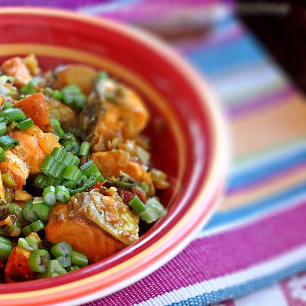 Fiery Salmon Stew with Red Potatoes is a hearty, flavorful one-dish meal featuring tender salmon and spicy red potatoes in a savory broth.