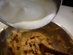 - In a clean bowl, beat the egg whites until stiff peaks form. Gently fold the egg whites into the batter until just incorporated.