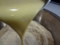 - Pour the wet ingredients into the well of the dry ingredients and stir until just combined. Do not overmix.