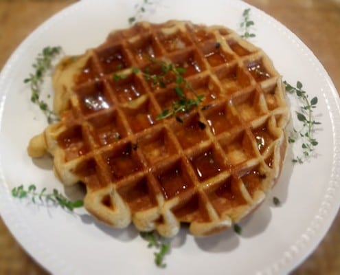 I explained to her that I had made some thyme infused maple syrup to put over the waffles when we ate them on Friday night. “that sounds really good,” she had responded, “But these are so good alone that they don’t really need it.”