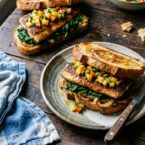 Sweet, spicy, and savory flavors combine in this unique sandwich. Caramelized onions and sauteed spinach add depth and texture.