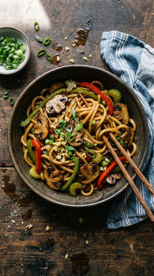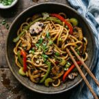 A quick and flavorful stir-fry loaded with mushrooms and colorful veggies, served over warm noodles. Perfect for a weeknight meal!