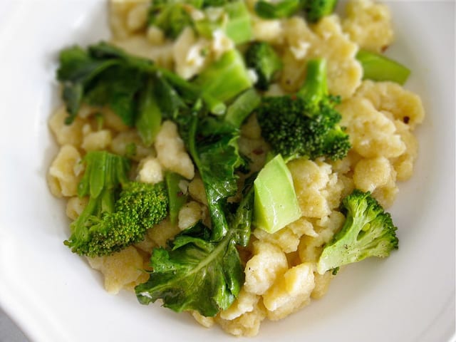 - Drain the water and add the frascatelli directly to the broccoli. Stir well.
