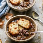 The broiler step at the end is important, don’t skip. The cheese needs high heat to melt properly and create that stretchy, browned top that defines French onion soup. Use oven-safe bowls and watch them closely so the cheese doesn’t burn.