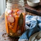 - Pack the carrots and radishes into a cooled and clean pint jar.