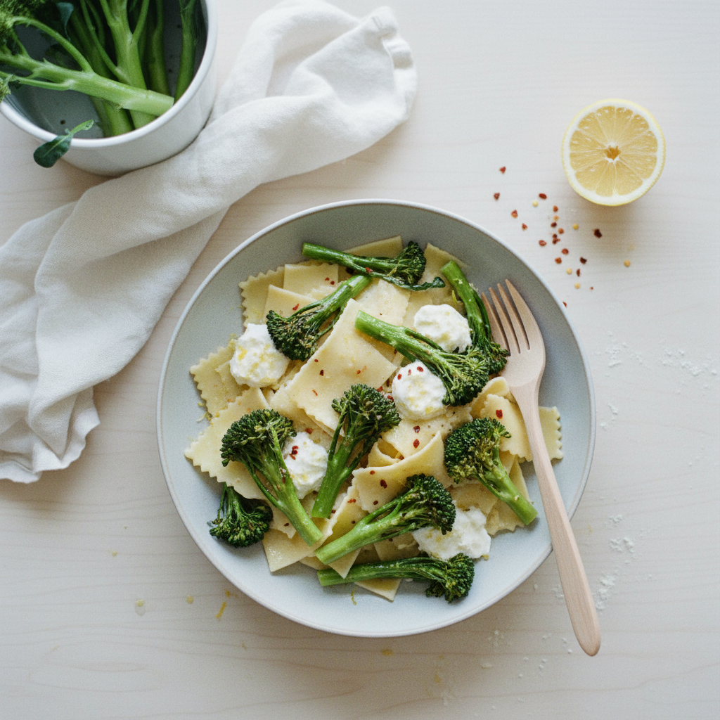 PrintFresh Pasta Handkerchiefs with Garlic Broccolini and Ricotta
