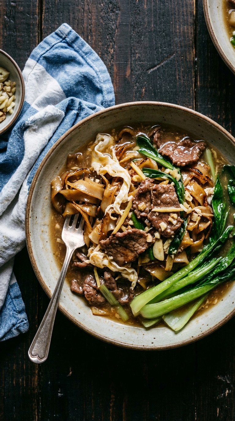 This noodle stir-fry is easier than it looks! A flavorful beef and gravy dish over wide rice noodles.