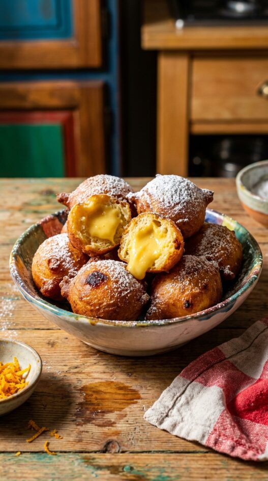 A classic Italian soft fried dough filled with rich and creamy custard. They are simply irresistible.