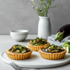Roast the eggplant and garlic together until soft and caramelized. The garlic mellows and sweetens in the oven, blending into the eggplant to create a smooth, savory filling for the tart shells.