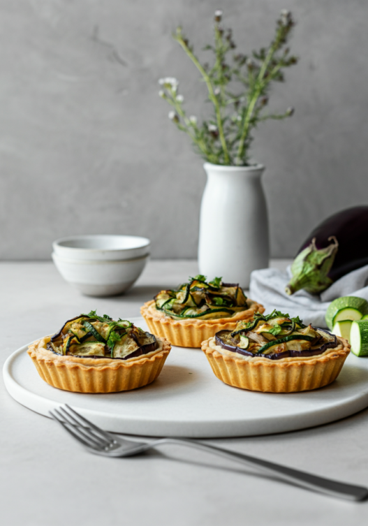 Garlic-Eggplant Tarts with Zucchini