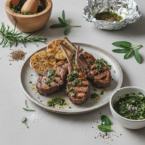 Garlic and Herb Rubbed Lamb Chops with Mint Chimuchurri