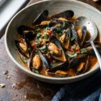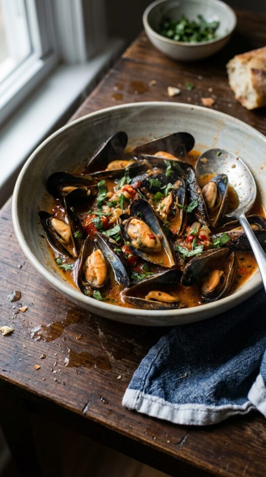 Spicy Garlic and Tomato Mussels