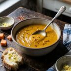 Creamy, subtly spiced soup perfect for a chilly evening. Sweet potatoes and ginger create a warming, comforting bowl.