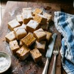 - Once set, flip the marshmallow brick upside down onto a cutting board sprinkled with powdered sugar and cut into desired shapes/sizes.
