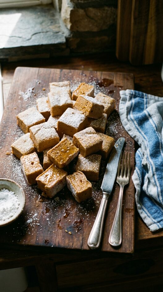 - Spray an 8×8-inch baking pan with cooking spray and dust with powdered sugar; set aside.